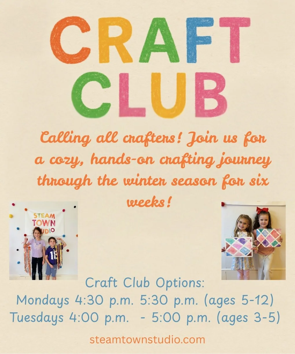 Craft Club (ages 3-5) runs every Tuesday from 4:00 p.m. - 5:00 p.m. for six weeks